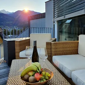 Es verfügt über eine Terrasse und eine Küche. Die Zimmer haben Aussicht auf die Berge. In allen Badezimmer findet man eine Badewanne und eine begehbare Dusche.